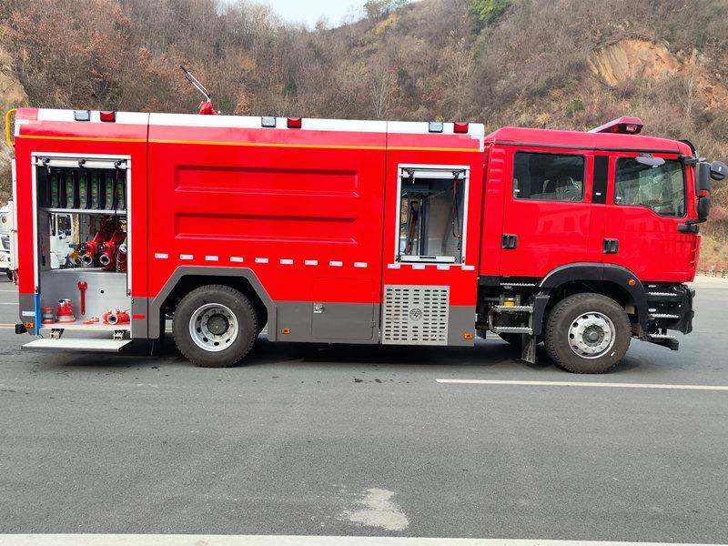 Dimodifikasi menggunakan sasis SINOTRUK SITARK, truk ini dilengkapi kabin baris ganda berteknologi MAN asli Jerman dengan kemiringan hidrolik. Truk ini ditenagai mesin MAN MC07H.35-60 Jerman bertenaga 350 tenaga kuda. Truk ini mengadopsi struktur tangki terbuka dengan kapasitas tangki 8 meter kubik. Ringkas dan lincah, truk ini menawarkan performa dinamis yang luar biasa dan kecepatan tinggi, sekaligus mempertahankan fungsionalitas penuh truk pemadam kebakaran besar. Rangka superstrukturnya dibuat dengan profil paduan aluminium standar Eropa, yang mengurangi bobot keseluruhan sekaligus meningkatkan mobilitas dan kapasitas muatan.