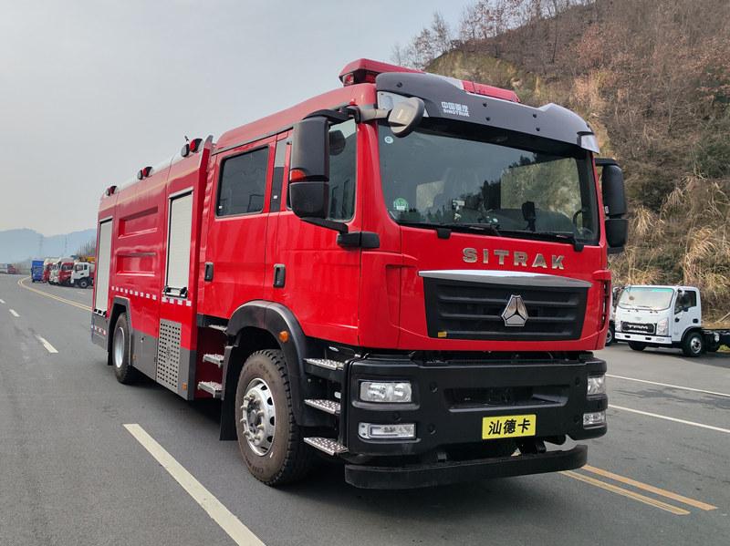 Truk pemadam kebakaran busa SINOTRUK SITRAK dibangun di atas sasis ZZ5206N471GF5, dengan desain kabin baris ganda yang dapat menampung enam personel. Truk ini ditenagai mesin MC07H.35-60 Euro VI bertenaga 350 tenaga kuda yang dipasangkan dengan transmisi 10-percepatan, mencapai kecepatan tertinggi 105 km/jam. Kendaraan ini berukuran 8.540 × 2.550 × 3.450 mm dan memiliki kapasitas beban 8.200 kg. Truk ini dilengkapi dengan tangki air baja karbon berkapasitas 6.000 liter dan tangki busa baja tahan karat berkapasitas 2.000 liter. Pompa pemadam kebakaran menghasilkan laju aliran 60 liter per detik pada tekanan 1,0 MPa. Monitor kebakaran PL48 memiliki jangkauan 70 meter (air) / 60 meter (busa), dengan rotasi horizontal 360° dan pengaturan elevasi +80° hingga -30°. Cocok untuk operasi penyelamatan kebakaran perkotaan dan industri, menggabungkan daya efisiensi tinggi dengan kemampuan pemadaman kebakaran serbaguna.