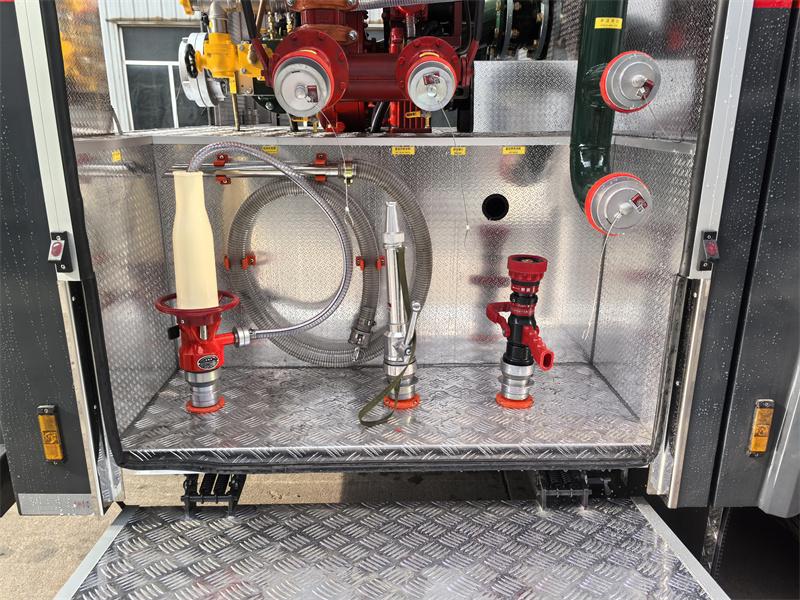 Panel kontrol: Termasuk petunjuk pengoperasian, tindakan pencegahan, diagram perpipaan tangki, pengukur vakum, takometer, pengukur tekanan, pengukur ketinggian air, pengukur ketinggian busa, sakelar berhenti darurat, lampu indikator PTO, sakelar daya utama, sakelar pompa vakum, penerangan samping, lampu ruang peralatan, dan tombol-tombol lainnya.