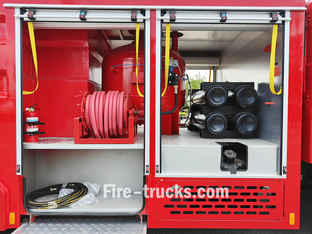Dilengkapi dengan pompa air, tangki air, monitor kebakaran, dan berbagai peralatan lainnya, kendaraan ini dapat dengan cepat mencapai lokasi kejadian untuk melakukan pemadaman kebakaran, penyelamatan personel, dan penanganan kecelakaan, serta banyak digunakan di sektor perkotaan, industri, dan keselamatan publik.