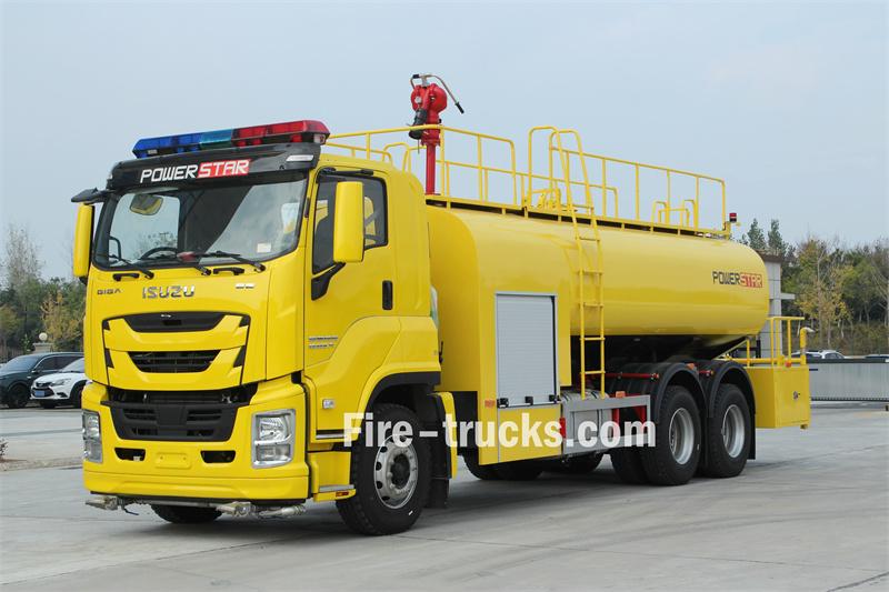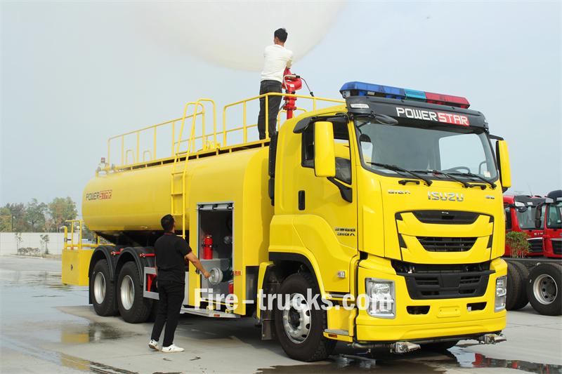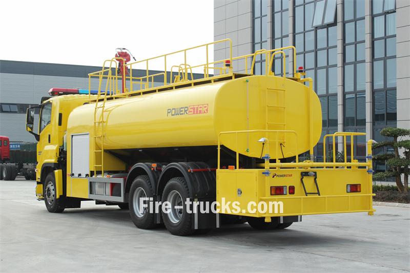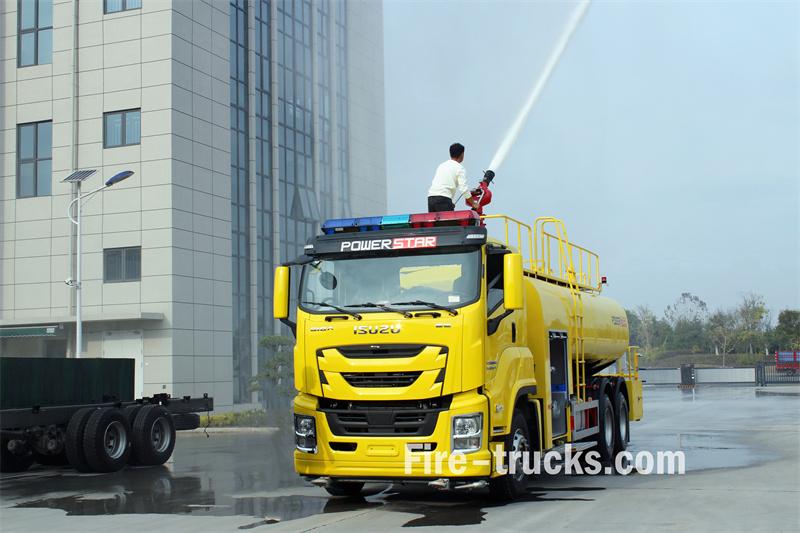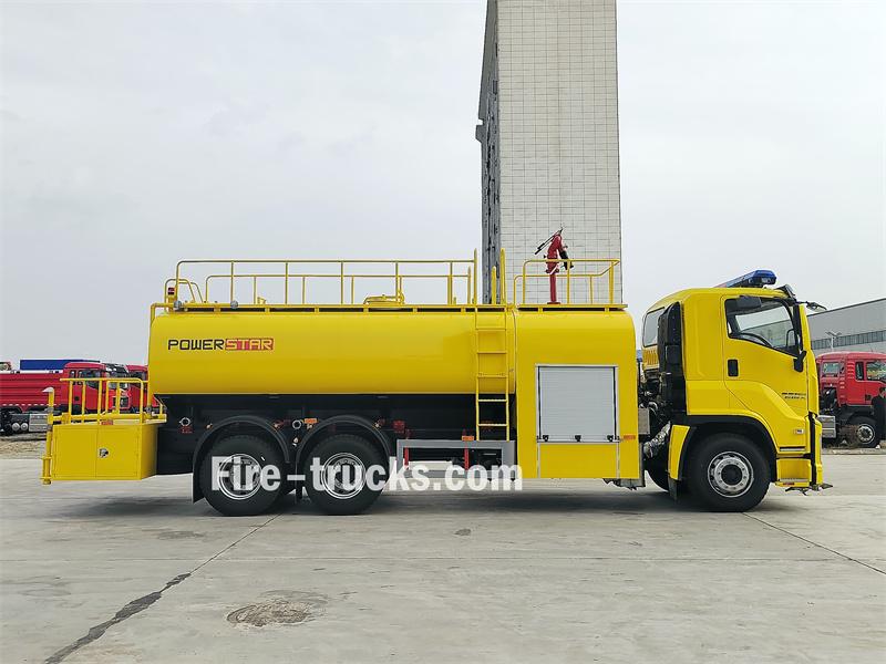 Truk pemadam kebakaran Isuzu 12000L menggunakan sasis Isuzu FVZ GIGA 6X4 dengan jarak sumbu roda 4650+1370mm. Truk ini dilengkapi dengan mesin Isuzu 6HK1-TCG60 dan transmisi FAST 9-percepatan. Bagian depan struktur atas menampung rumah pompa, yang berisi pompa pemadam kebakaran CB10/60-RS dan panel kontrol. Di belakang rumah pompa terdapat tangki air baja karbon berkapasitas 12 meter kubik. Bagian belakang dilengkapi dengan platform kerja dengan kotak peralatan, sprinkler samping, tangga di bagian belakang tangki, pengukur ketinggian air, kepala sprinkler sisi kanan, pagar pengaman atas yang dapat dilepas, dan monitor pemadam kebakaran PS8/50W.