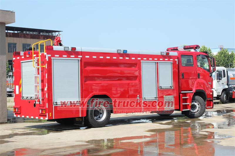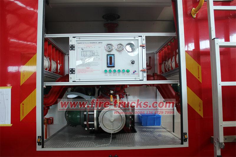 tanker material PP, 4X4, 6X6 drive, RHD driveTangki Air Pemadam Kebakaran POWERSTAR 6000L dimodifikasi berdasarkan sasis ISUZU GIGA QL1180EQFRY, dilengkapi mesin 6HK1-TCG61 dan transmisi FAST 8-percepatan. Mobil ini dilengkapi kabin ISUZU kelas VC61 baru dengan AC pemanas/pendingin, power steering, kunci sentral, power window, roda kemudi multifungsi, dan panel instrumen LCD multifungsi. Truk tangki pemadam kebakaran ISUZU GIGA Terdiri dari dua bagian utama: kompartemen kru pemadam kebakaran dan badan kendaraan. Kompartemen kru dirancang dua baris, dengan kapasitas 2+3 personel. Bagian depan badan kendaraan menampung kompartemen peralatan, bagian tengah berisi tangki air, dan bagian belakang adalah ruang pompa. Tangki air terbuat dari baja tahan karat dengan kapasitas 6000 kg. Kendaraan ini dilengkapi dengan pompa pemadam kebakaran tekanan normal CB10/40 dengan laju 40 L/dtk, dan monitor kebakaran PS40W yang terpasang di atas dengan jangkauan 65 m dan kemampuan rotasi 360°. Kendaraan ini memiliki karakteristik rasio daya-terhadap-berat yang tinggi, performa yang komprehensif, serta kontrol terpusat yang mudah digunakan.