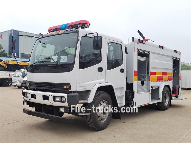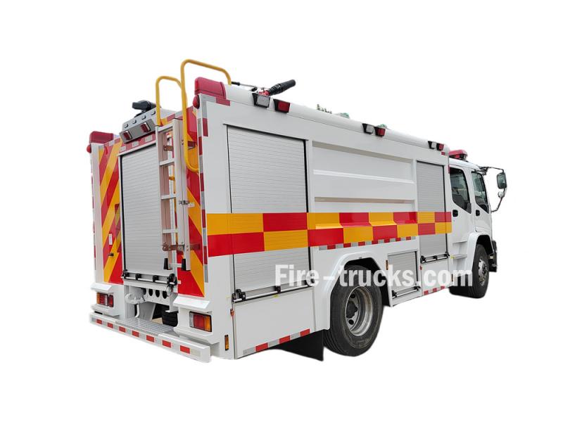 Truk pemadam kebakaran busa Isuzu FVR 6 meter kubik menggunakan sasis Isuzu FVR dengan jarak sumbu roda 4500 mm. Truk ini dilengkapi dengan mesin Isuzu 6HK1-TCL, transmisi Fast 8-speed, tangki air baja karbon 5 ton (dengan perawatan anti korosi), tangki busa baja tahan karat 304 1 ton, pompa pemadam kebakaran tekanan rendah Shanghai Xiongzhen CB10/40 (ruang pompa terpasang di belakang), monitor pemadam kebakaran Chengdu West PL32, dan gulungan selang tekanan menengah 30 meter di ruang pompa.