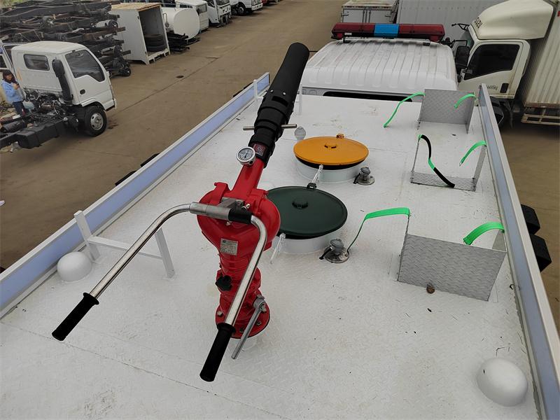 • Interior Ruang Pompa: Juga dilapisi dengan pelat kotak-kotak dari paduan aluminium, anti selip dan tahan aus, dengan tata letak yang rasional untuk menyimpan peralatan dan aksesori kendaraan. Menyimpan selang pemadam kebakaran, penampung air, distributor air, filter air, nosel pemadam kebakaran, pistol busa, dll.